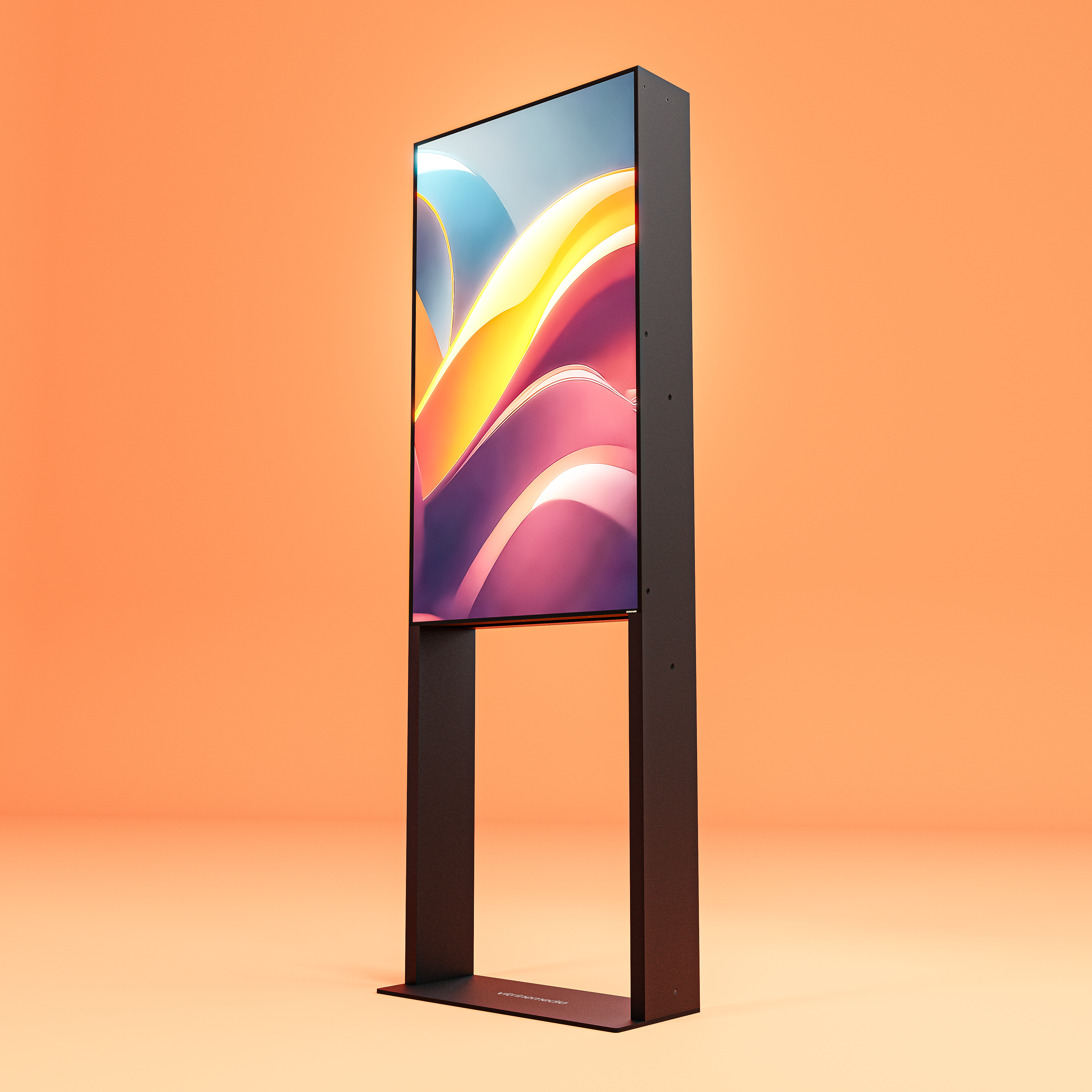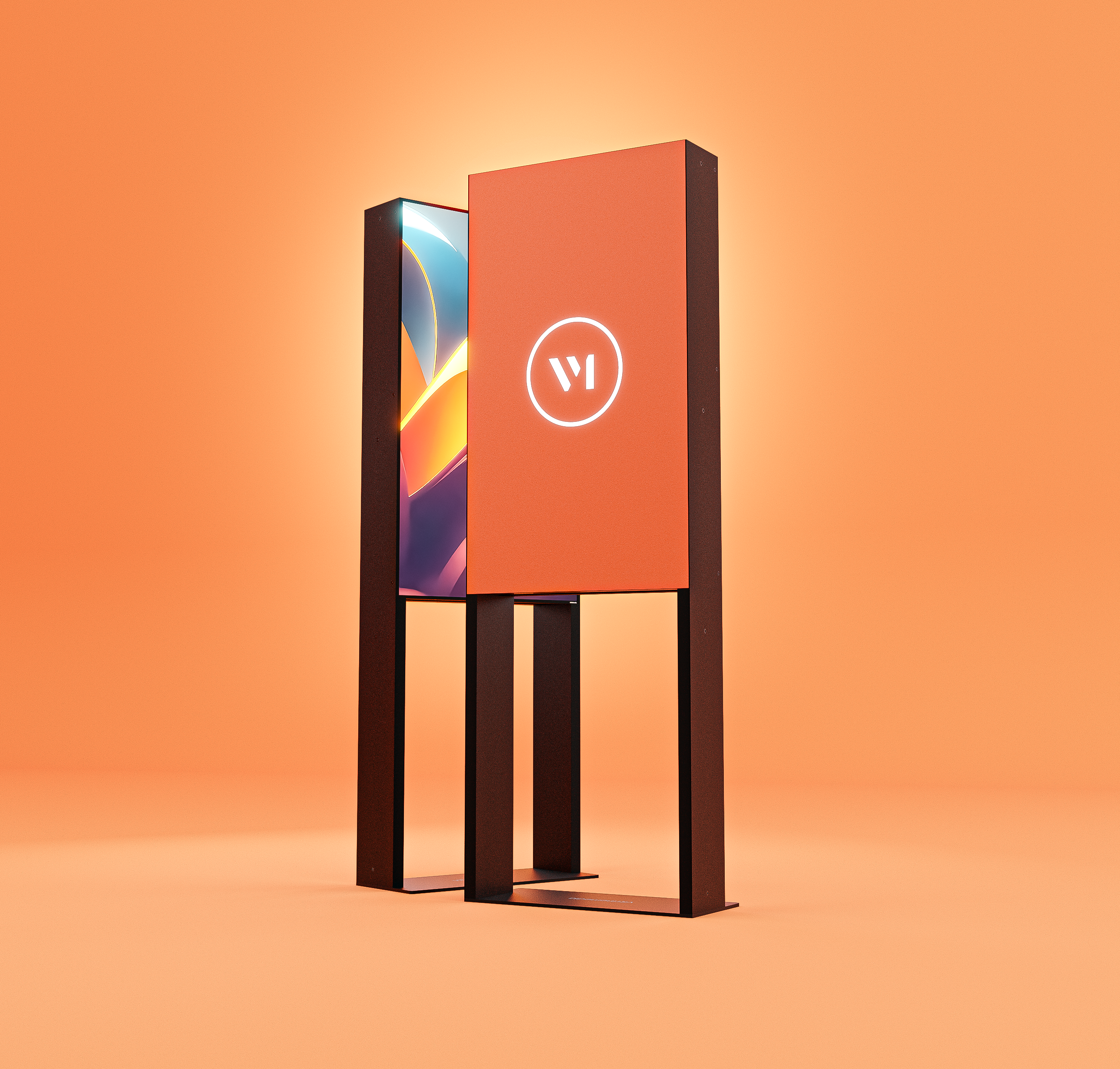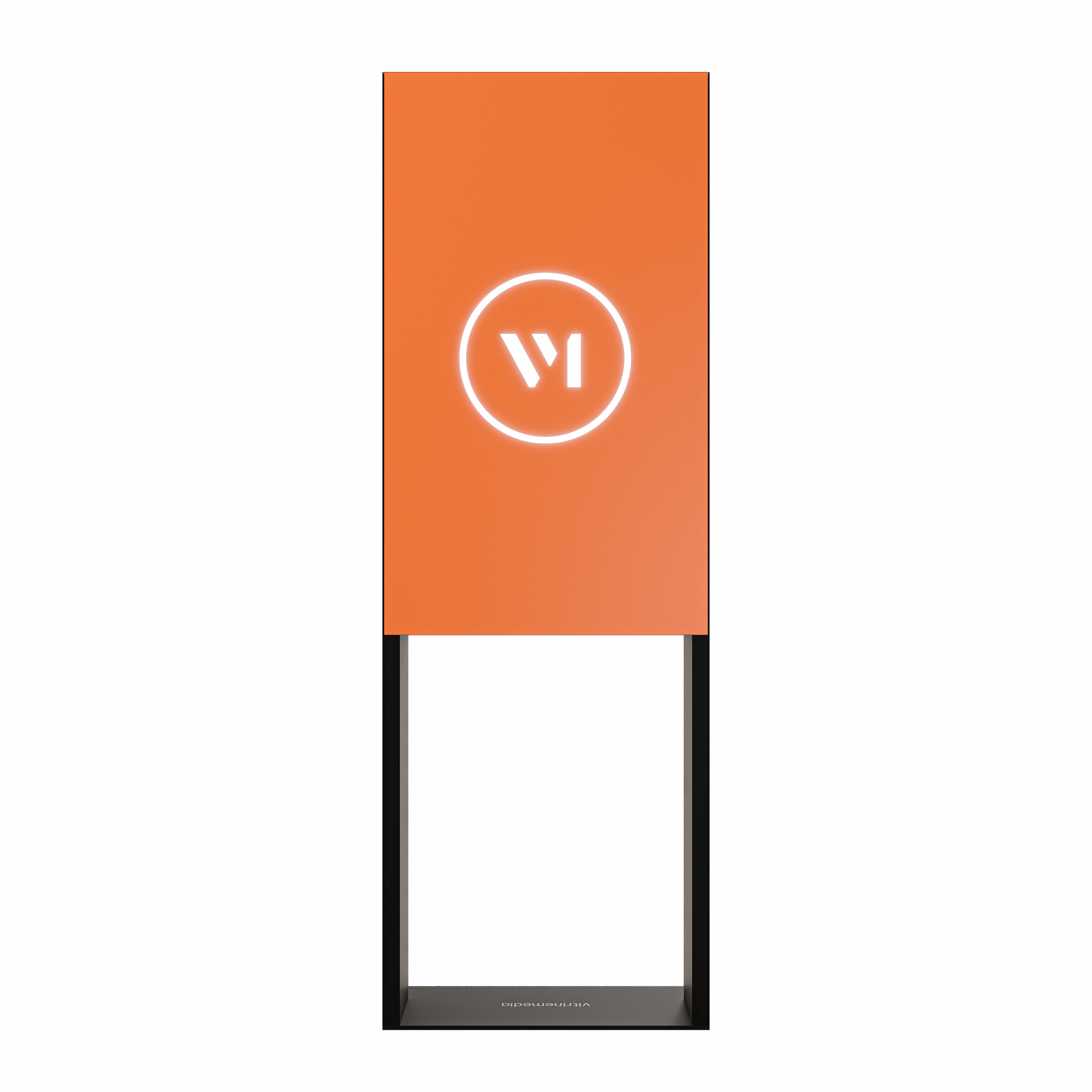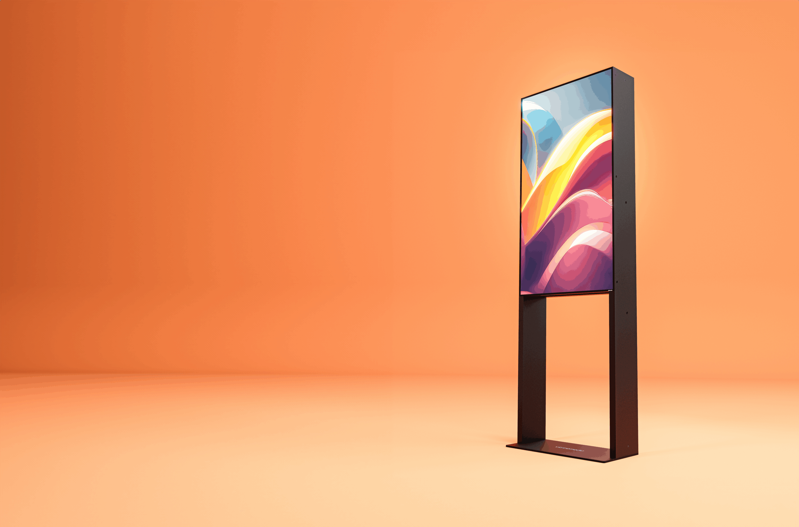 Compatible with 49″,55″ and 75″ formats, in portrait, landscape or dual screen, the stand requires a minimum distance of 10cm